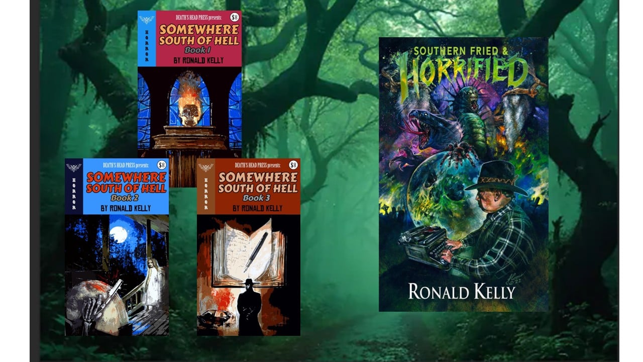 Fill your bookshelves with Southern-Fried Horror! The Ronald Kelly Ultimate Library Collection includes all of Ron's novels and short story collections in paperback format. Also included is his memoir/writing guide, Southern Fried & Horrified, and the rare three chapbook collection, Somewhere South of Hell. All books will be personally signed, with hand drawn RK artwork on the title page.